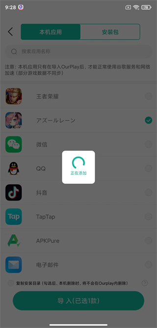 3、然后点击导入游戏/应用;
