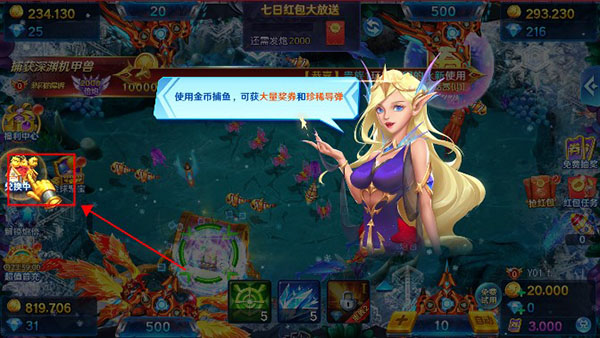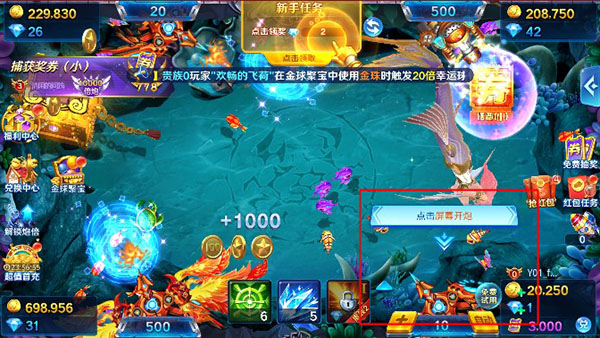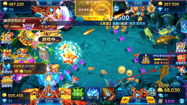 3、使用金币捕鱼,可以获得大量奖券和珍稀导弹