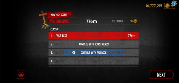 选择道具之后,玩家点击”PLAY”即可开始游戏,在前进过程中,屏幕左上角会记录已经奔跑的距离,直到人物角色死亡,