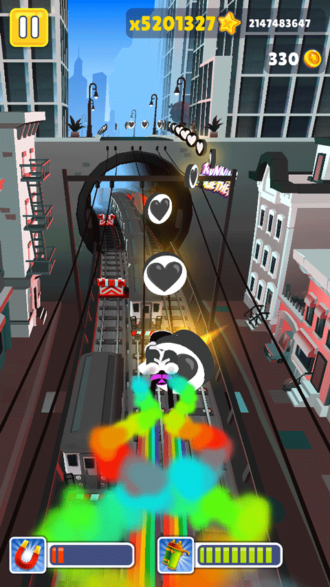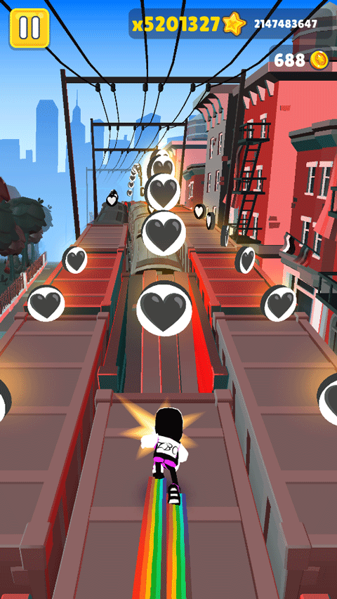 3、游戏途中会遇到多种闪闪发光的道具,拾取他们为你的跑酷带来更多的乐趣。