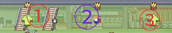 这游戏刚开局我没有按照提示来走我是先把二楼腾空然后建造第一个专柜, 这个专柜从左到右分别是花店、面包店、零食店