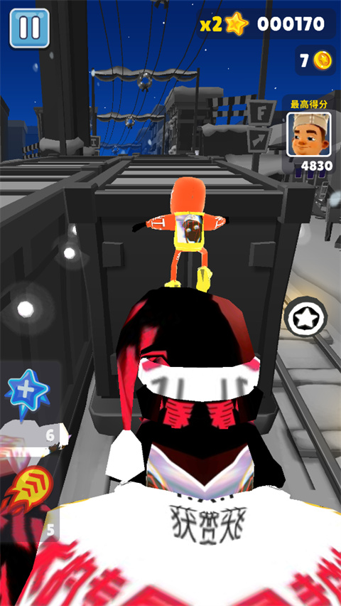 在游戏有活动的时候经常会出现收集品出现在高高的屋顶上,要保证屋顶附近有落脚点,也就是火车,这样玩家才可以借着火车向上跳到屋顶。有个小小的技巧需要告诉大家,在跳的时候人物不论在左右还是中央都是可以进去的哦,用跳鞋的话很顺畅,但不要玩死,无跳鞋也可以放心大胆地上去,只会小绊一下并不碍事。