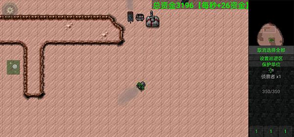 游戏最重要的是资金,我们现在只有少的可怜的资金,怎么办呢?当然是找一个黑漆漆的大坑,然后让建造车在上面建‘’资金提取器”,钱就开始源源而来了,可升级,建议初期就升。