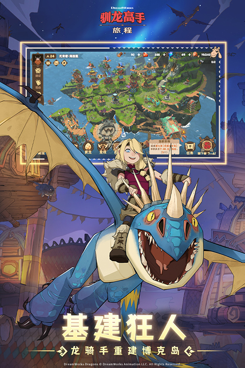 除了驯龙冒险外,游戏还融入了模拟经营元素。玩家可以建设和装饰自己的博克岛家园,建造各类功能建筑,生产资源,打造独一无二的驯龙基地。