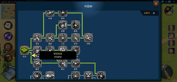 7、之后人口丰富起来了,就是让国家变的更加强大,所以这个时候就需要知识强国了,需要研究科技,点击左边的药品图标来研究科技;