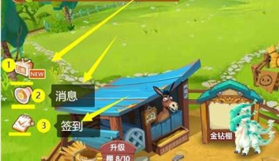 1、进入qq牧场后,点击左侧的公告、消息、签到,可以查看公告、消息,签到可以获得奖励
