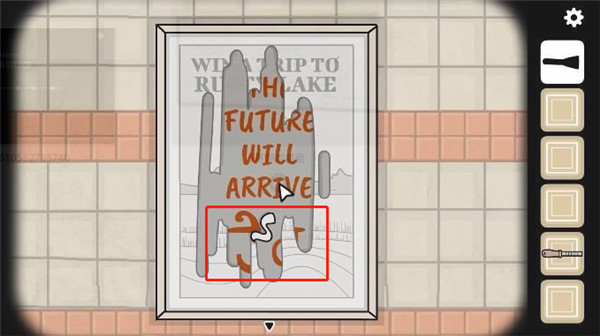 6、在婴儿车旁边的场景里有一张海报,用铲子把海报刮烂,就看到“THE FUTURE WILL ARRIVE”,也就是未来即将到来的意思。然后海报底部会出现一个神秘符号。