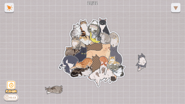 挤在一起的猫猫是一款画风可爱、玩法轻松简单的休闲收纳类手游。游戏的核心目标就是将各种各样、憨态可掬的猫咪,巧妙地安放到有限的空间里,看着它们挤作一团、发出满足的呼噜声,为玩家带来最直接、最温暖的治愈体验。挤在一起的猫猫是一款为心灵“按摩”的游戏。它没有复杂的操作和激烈的对抗,只用最简单的“收纳”玩法和最极致的“可爱”元素,成功打造了一个毛茸茸的乌托邦,是所有爱猫人士和压力人群的必备解压神器。