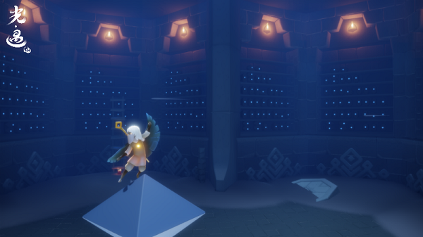 在底层,旅人们四周开始浮现出闪烁的星火。原本半埋在地上的石盘升起成为浮动台阶,墙上的瓦罐散发着点点荧光。初始层和底层都有着隐藏的大门,需要旅人们和小伙伴协作才能打开。