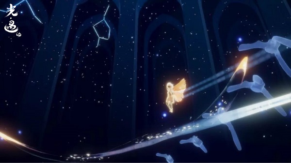 跟随恢复自由的遥鲲飞往顶层。顶层的星图将幻化作记录王国历史的画像,旅人们一路帮助的先祖重现眼前,并赋予了光之后裔最终的使命。