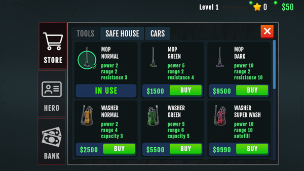 清洁工具、防护装备和消毒用品都需要您精心管理和购买。如何在有限的背包空间和预算内,高效地完成每一次任务,是游戏的核心策略所在。