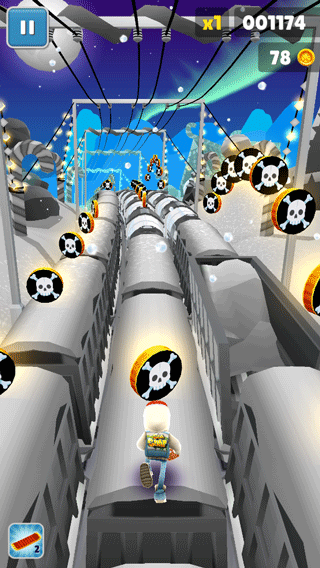 1、黑白风格的哈尔滨地图,印有骷髅图案的金币,体验全新风格的地铁跑酷。