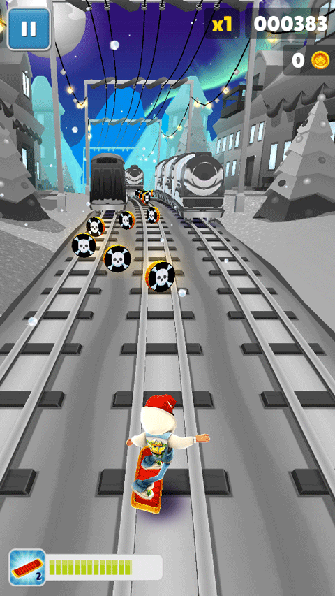 地铁跑酷黑白哈尔滨版本是由地铁跑酷的哈尔滨版本魔改而来,它是一款休闲跑酷游戏,游戏的地图被修改为了黑白风格,金币印上了骷髅图案,搭配上飘着雪花的哈尔滨地图,显得非常美观。在游戏开始前,玩家可以选择不同的角色,每个角色都有自己的特点和技能,比如速度快、跳跃高等。地铁跑酷黑白哈尔滨版本是一款非常独特的魔改版本,它不像其它版本那样让人眼花缭乱,感兴趣的朋友快在本站下载体验吧。
