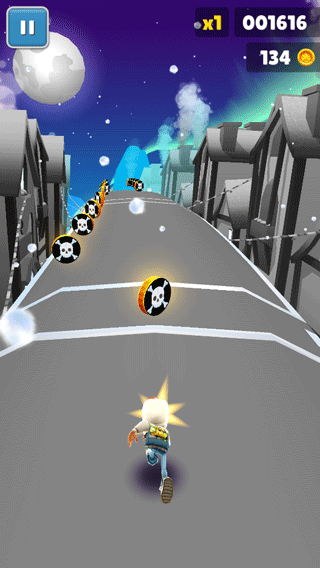 2、双击屏幕使用主动道具滑板,可以抵抗一次撞击