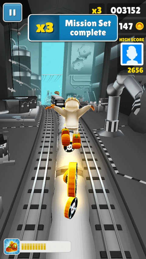 4、途中会遇到各种道具,喷气背包和撑杆会让你无敌一段时间