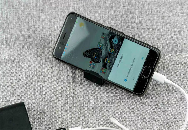 3、先将小游插到移动电源上,红色指示灯开始闪烁,然后用数据线连接手机和小游,记得先打开手机的USB调试,然后就会自动弹出调试确认框,点击确认;