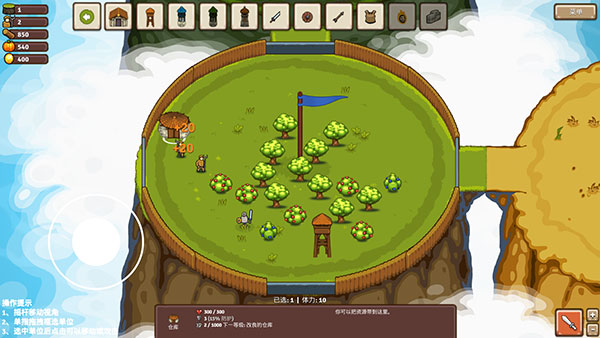 5、我们的初始领地只有一块,需要先点击左上方的图标【建造仓库】才能让工人们开始劳动。