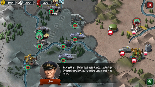 3、战斗上没有什么额外的技能,实打实地在拼战斗资源配置和战术思想,比如可以使用包夹战术快速集火一个敌人等等。游戏的背景设计其实就是一个大地图,士兵、坦克这些战斗资源会在上边行动,很有一种指点江山的感觉,但是从战斗爽快感来说还是有些不温不火,爆炸、开火等动作的还原度还可以再提高一些。