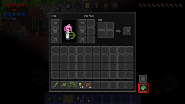 4、当玩家需要合成更高级的工具,可以点击上方的背包;