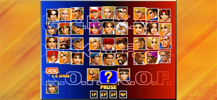 3、全明星阵容:集结了《拳皇94》至《拳皇97》的庞大人气角色阵容,如草薙京、八神庵、不知火舞、特瑞等数十位格斗家均悉数登场,且没有复杂的剧情设定,是一款纯粹的“梦幻对决”之作。