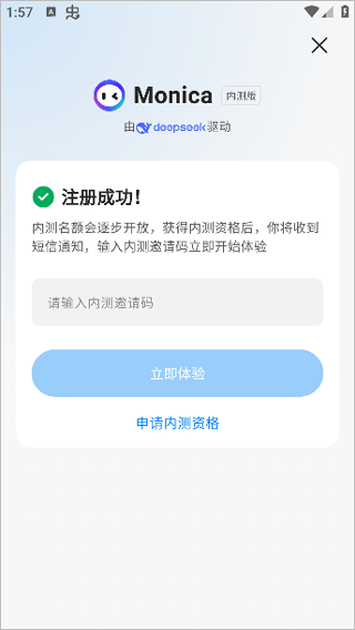 2、注册成功后填写相应的内测码即可进入到页面中了;