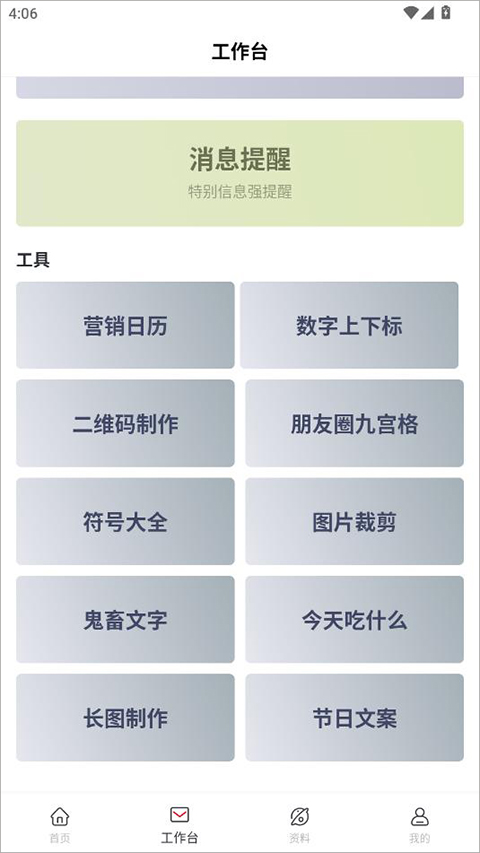 5、点击工作台可以使用各种工具