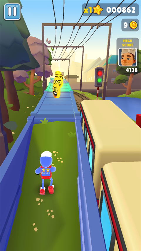 8、当你在3条火车轨道上接金币时,最后一辆火车速度是最快的。