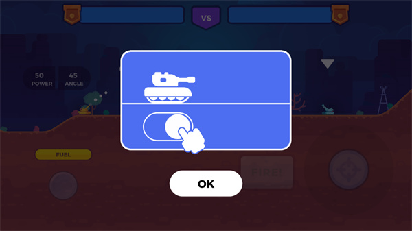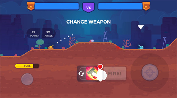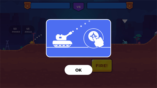 1、回合对抗:你与对手轮流操作坦克,位于屏幕两侧的地形之上。