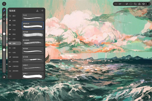1、丰富逼真的笔刷引擎:内置大量高质量仿生画笔,如铅笔、水彩、油画笔、马克笔等,每种笔刷都能模拟真实物理特性,带来极具表现力的绘画效果。