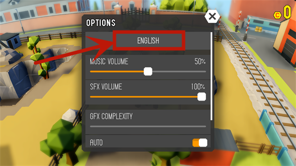 1、打开鲁莽大逃亡2最新版后,进入游戏,可以看到游戏默认为英文,此时需要点击右下角的设置按钮;