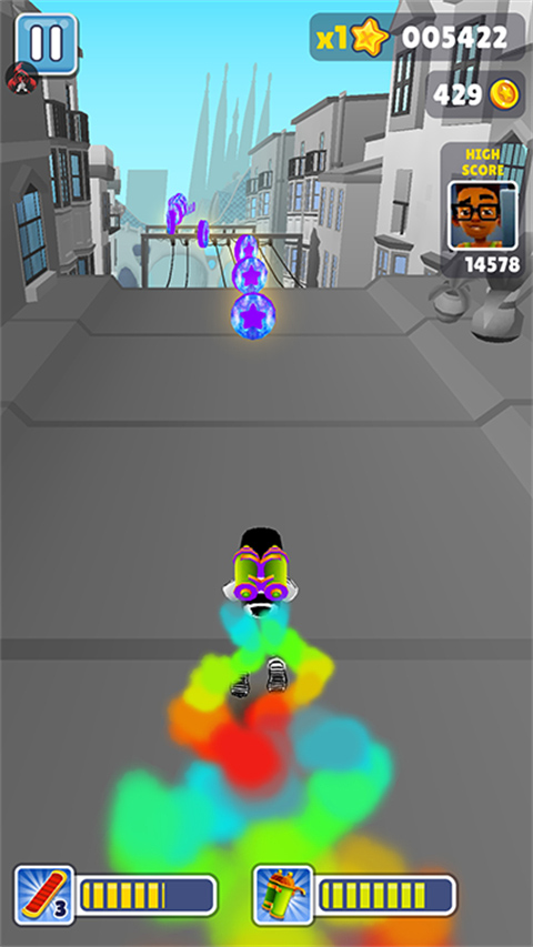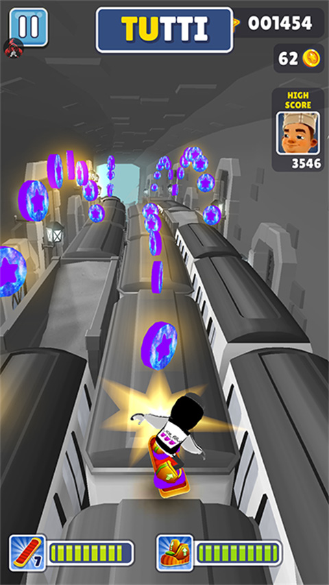 完美保留了《地铁跑酷》系列最核心、最爽快的三线跑酷玩法,包括跳跃、滑行、左右移动以及使用道具。操作手感流畅,并在性能上进行了优化,确保在高分对决中也能稳定运行。