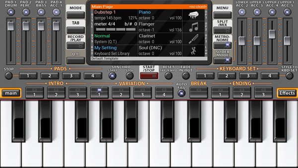 此部分包括四个选项:声音/循环、键盘设置、风格选择和和弦/迷你键盘