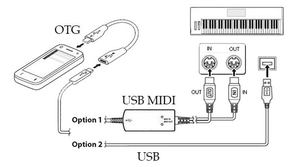 MIDI:使用 USB 电缆、USB MIDI(需要 OTG 功能)或蓝牙 MIDI 将外部键盘连接到设备。