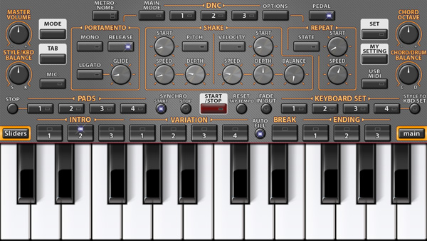 • 开始和停止:当释放键盘时,风格停止(按键盘分配和弦后)。