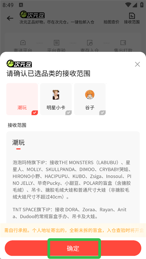 5、若有其他的需要一起卖的物品,点击【添加品类】加上一起卖即可,然后点击【确认寄卖】。