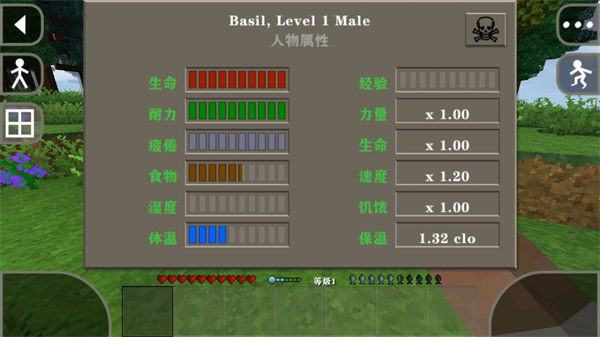 7、点击人可以查看人物属性,例如生命、耐力、食物、经验等等;