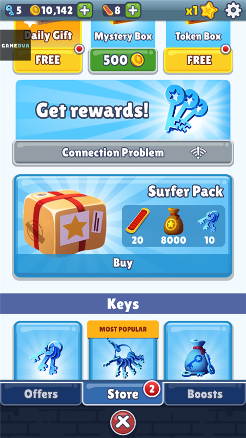 1、游戏了的二段跳算是基本动作了,在游戏里玩家需要现获得滑板道具(可以在商店购买,也可以在游戏进度中获取);