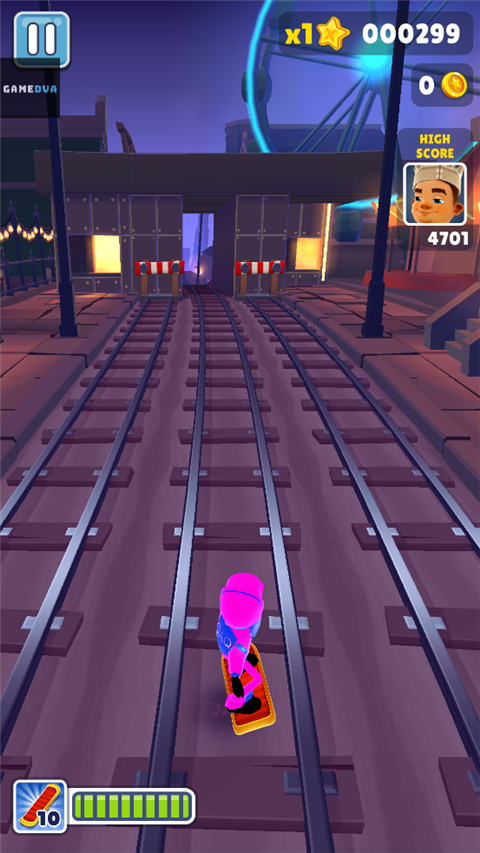 有地铁也会有隧道,中间有一根柱子,左右两边无规律会有火车奔过来,这个时候就要考验玩家的应变能力。