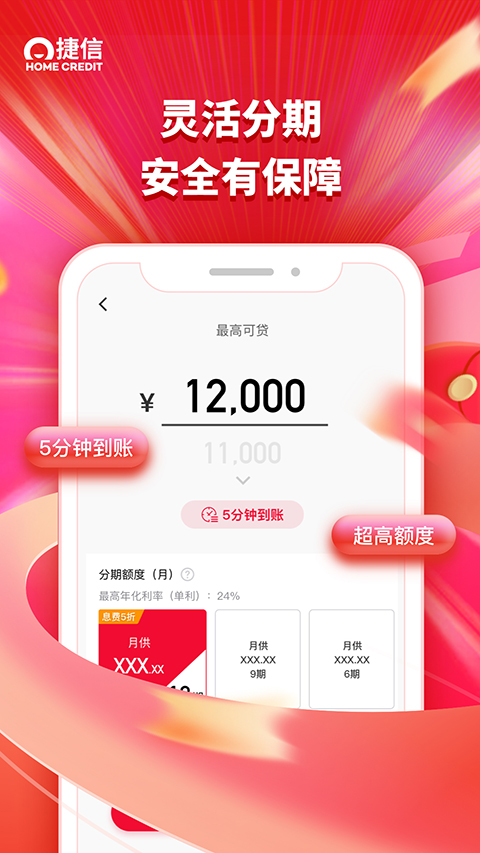 根据用户信用状况提供灵活的信额度,可用于与捷信合作的商户消费,覆盖家电、3C产品、教育、家装等多个领域。