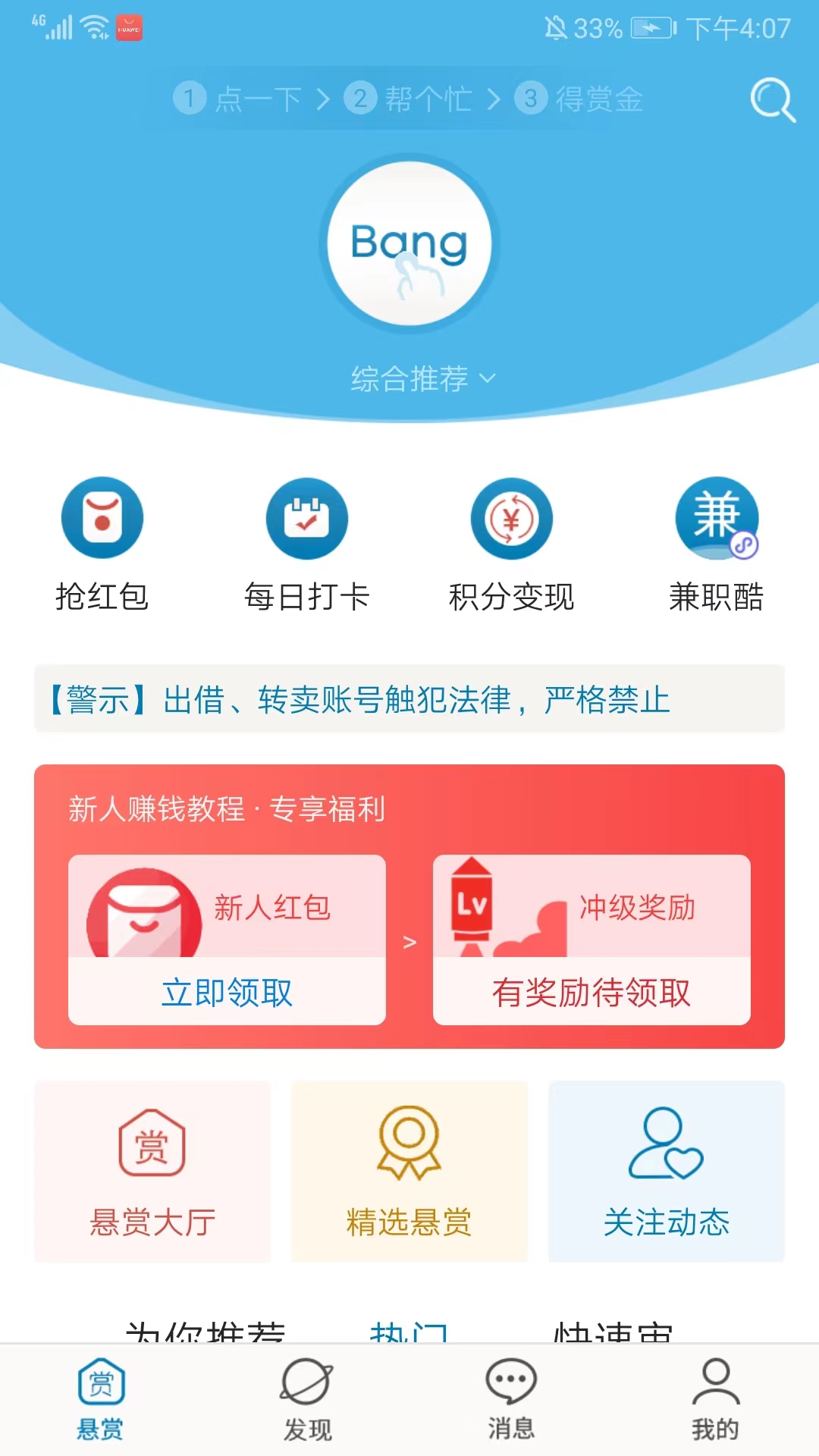 1、打开众人帮2025最新版,进入【悬赏】界面,找到并点击悬赏大厅,