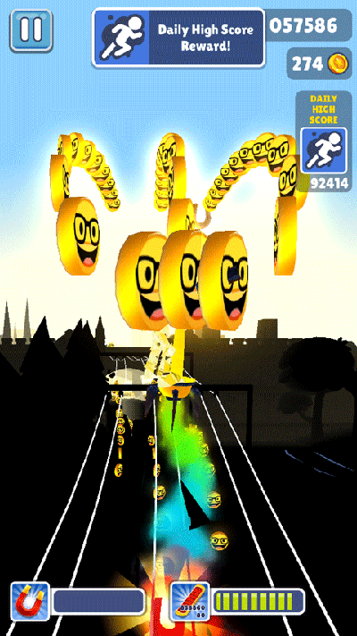 获得飞行背包后,在道具有效时间内,可在空中飞行,不会遇到障碍物及火车,但仍然可收集金币。