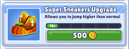获得运动鞋后,在道具有效时间内,可以跳得比平常高。如果玩家跳的时候头碰到天花板,又没有使用滑板,游戏将会完结。