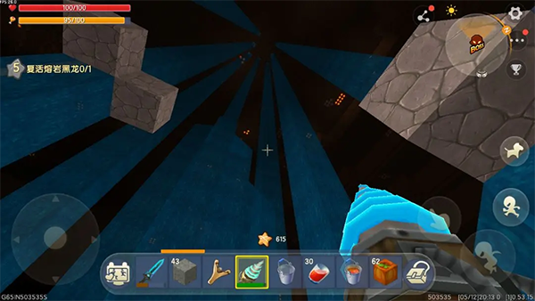 用镐子向下打通八条水渠,将水注满入龙巢(注意千万不要顺着水流向下飘浮,被黑龙发现它会向上空吐岩浆,可以直接摔死再复活)