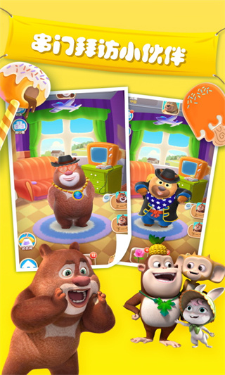 1、深度伙伴养成:核心玩法围绕“养成”展开。您需要照顾熊大、熊二及其他伙伴的饮食起居,通过喂食、洗澡、玩耍、训练来提升它们的等级、心情与能力,解锁更多互动动作和专属剧情。