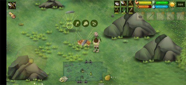 谨慎狩猎:有了木枪后,可以尝试狩猎小型动物(如兔子)。面对大型动物务必小心,利用地形(如爬上石头)或制作多个武器与之周旋。