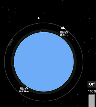 持续加速,直到地图上你的飞行轨迹绕成一个完整的椭圆,且最低点(近地点)和最高点(远地点)都高于70公里,即表示入轨成功。