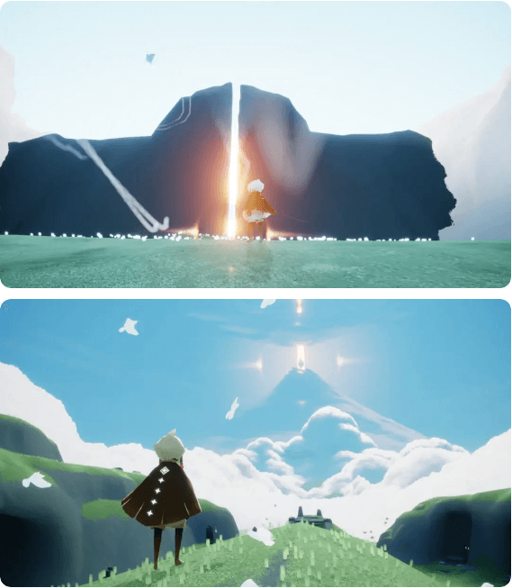 音乐是《光遇》的灵魂。由知名作曲家 Vincent Diamante 创作的配乐会随着玩家的行动和情绪动态变化。无论是独自探索时的空灵寂静,还是与好友携手飞翔时的激昂壮丽,音乐总能恰到好处地触动心弦,深化游戏的情感体验。