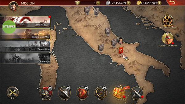 军团配置:初期“罗马重步兵+弓箭手”的“枪盾+远程”组合性价比最高,能应对大多数情况。