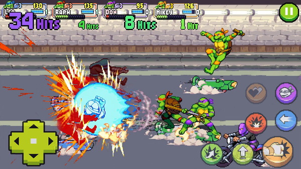 忍者神龟施莱德的复仇手机版是一款由Tribute Games开发,基于经典动画《忍者神龟》IP打造的横版卷轴动作手游。游戏完美复刻了街机时代的复古风格与爽快节奏,玩家将化身莱昂纳多、米开朗基罗、多纳泰罗、拉斐尔等熟悉角色,在纽约街头与施莱德及其爪牙展开激战,守护城市和平。作为一款由Tribute Games开发的横版卷轴动作手游,它以其精致的像素美术、流畅的战斗手感与丰富的合作玩法,使其成为怀旧玩家与动作游戏爱好者不容错过的佳作。
