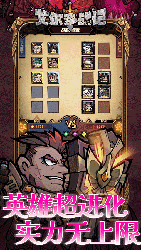 艾尔多战记是一款融合了策略放置与RPG元素的竖屏手游,以独特的手绘暗黑童话风格打造了一个充满神秘与危机的幻想世界。玩家将在这个被“混沌”侵蚀的国度中,招募风格各异的英雄,组建冒险队伍,通过策略布阵与角色养成,揭开世界背后的古老秘密,拯救濒临崩溃的艾尔多大陆。作为一款融合了策略放置与RPG元素的竖屏手游,以其独特的世界观、深度的策略性和友好的放置体验,为玩家提供了一个可持续探索的奇幻世界。无论你是喜欢深入研究阵容搭配的策略玩家,还是享受轻松挂机成长的休闲玩家,都能在这个神秘大陆上找到属于自己的冒险节奏。